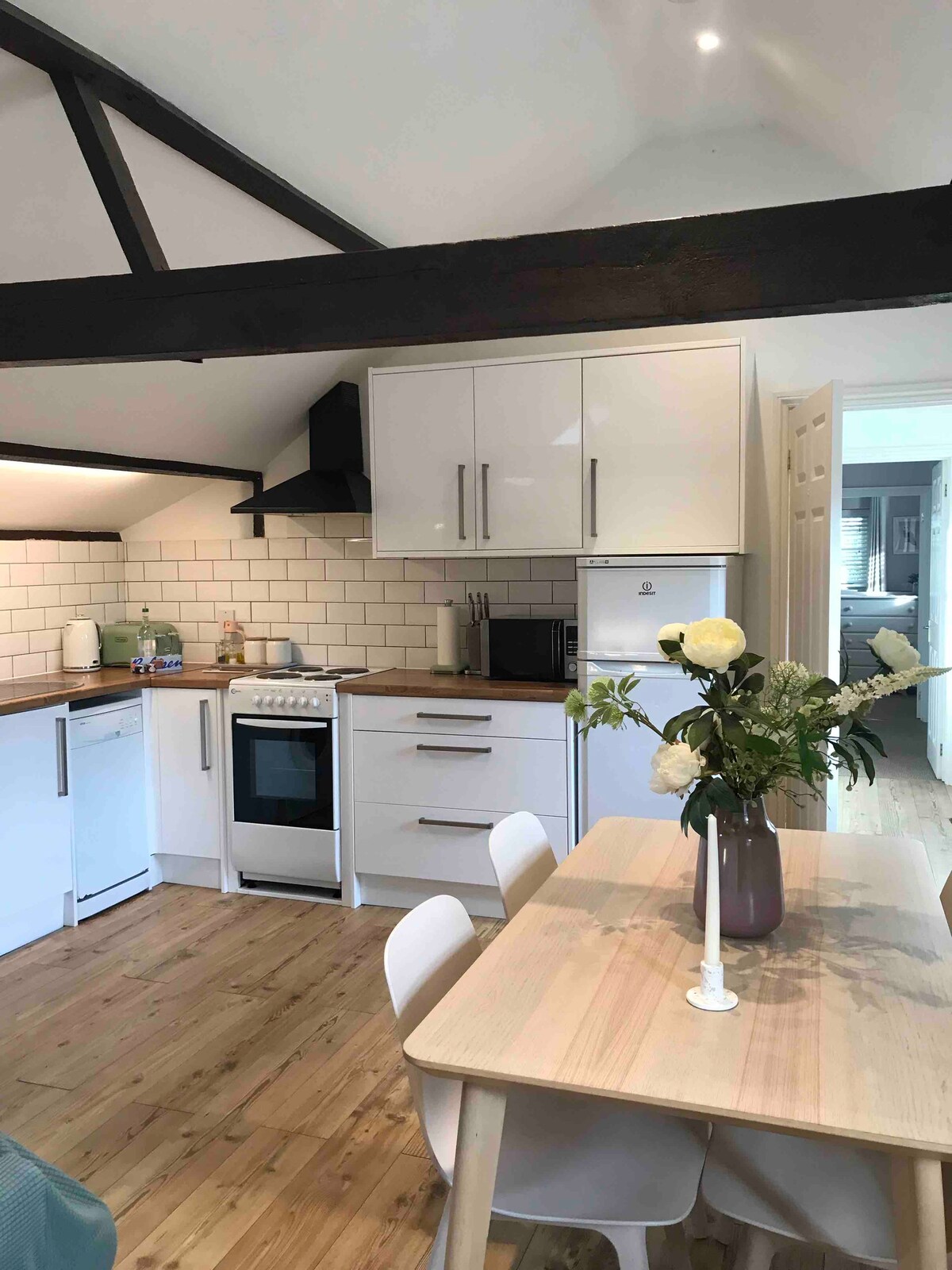 A cosy 1795 flint cottage annex with sweeping rural views, just 3.7 miles from the Norfolk coast. Peaceful, light‑filled and carefully furnished for comfort with a fully equipped kitchen suitable for home cooking and a super‑king bed that can be arranged as twins. Opening out to a private patio (afternoon sun). Close to coastal towns, cafés, pubs, beaches, and farm shops. Ideal for couples or small families, with a cot, child’s bed, and a dog welcome. Plenty of free parking and bike storage.