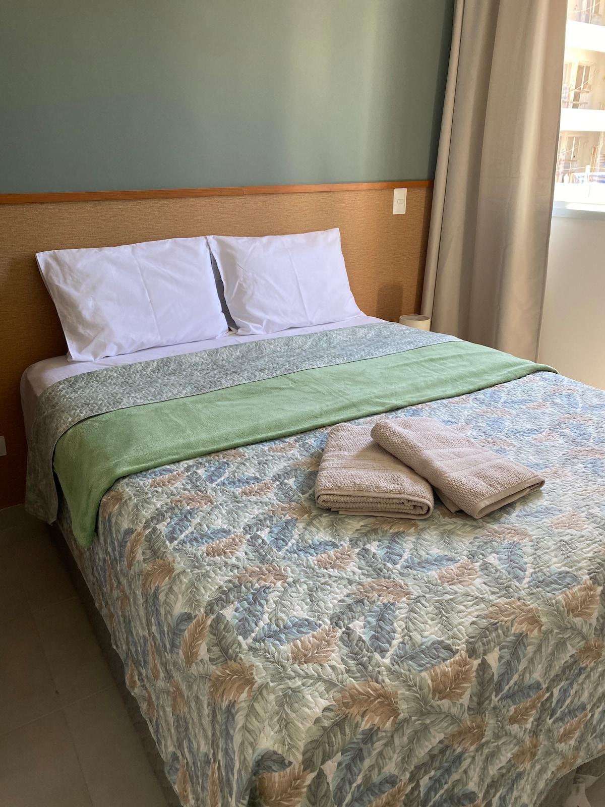 Excelente estúdio (com ar condicionado) localizado no centro de Ubatuba, perfeito para no máximo 4 pessoas. O estúdio possui 1 quarto (cama de casal e sofá-cama) conjugado com sala, banheiro, varanda gourmet c/ churrasqueira e cozinha completa, e 1 vaga de garagem. Na área comum do prédio, nossos hóspedes terão acesso a piscina. Todos os móveis são novos e foram escolhidos para que nossos hóspedes tenham um feriado agradável e relaxante.