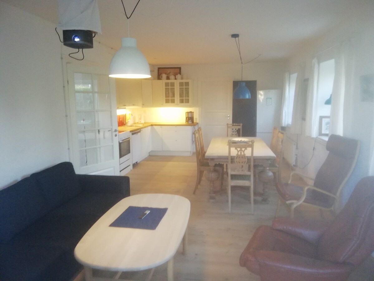 Apartamento encantador e bem decorado de 94 m2 no centro de Middelfart. Primeiro andar. Com uma pequena wiev para o mar e muito perto de lojas, restaurantes, o porto, cinema e o parque natural de Lillebælt, Bridgewalking e museu de argila. Há 1 quarto grande com uma cama queensize e uma cama individual. Na sala de estar há duas camas de 140 cm. Estacionamento gratuito nas proximidades. Instalações de café e chá e uma kitchenette. Mínimo de idade de reserva 25 anos. As famílias são bem-vindas. Cama de bebé pode ser organizada.