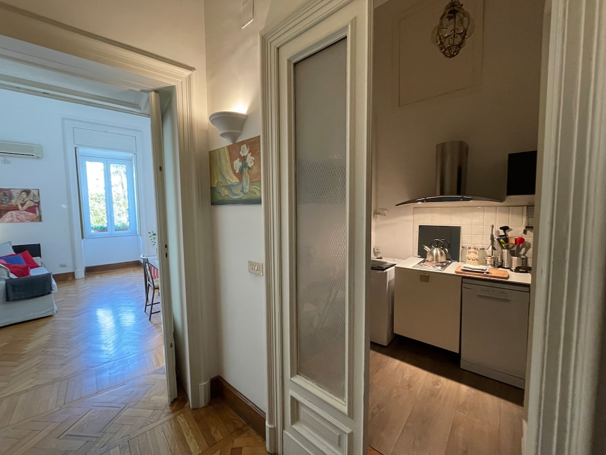 Elegante, central, muito luminoso, silencioso, com vista para um jardim, decorado com bom gosto, em um edifício histórico, no bairro mais exclusivo, na praça Amedeo, a mais bonita e verde, com a estação de metrô, e tudo perto, bares, restaurantes, lojas, dos mais característicos aos mais elegantes, a poucos minutos você chega à maravilhosa orla de Nápoles. Equipado com todos os confortos, portaria 24 horas, elevador, Wi-Fi rápido, ar condicionado e aquecimento, máquina de lavar louça e máquina de lavar roupa.