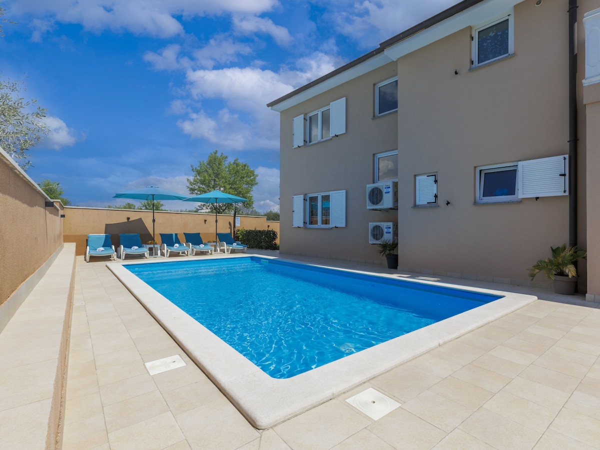 A moradia é uma moradia moderna e nova numa localização tranquila e privada, mas não muito longe do mar a 8 km e da cidade de Pula a 7 km de distância A grande piscina privada e aquecida com uma cachoeira e um bar na piscina é puro luxo. Custo extra para piscina aquecida 300 euros por semana. No terraço de jantar coberto, você pode grelhar suas especialidades que você pode preparar na cozinha de verão na grelha.