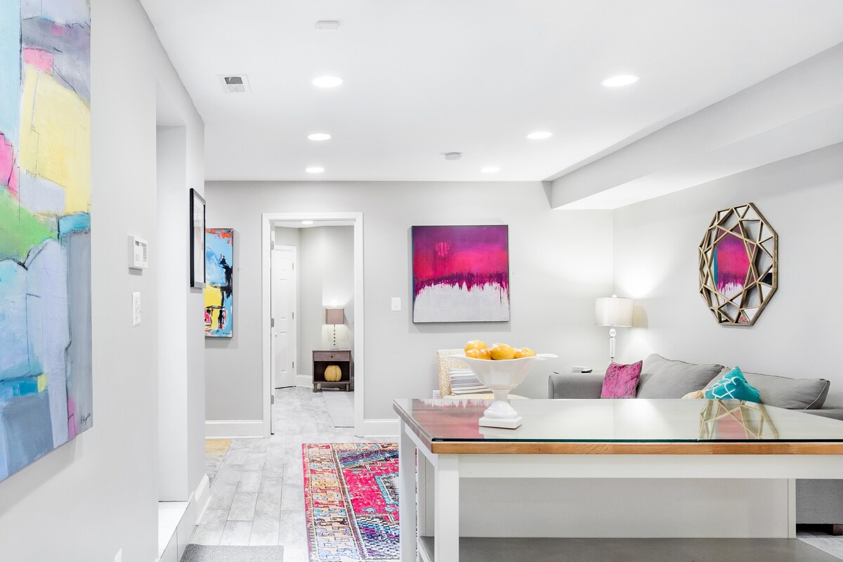 Porão inglês colorido e moderno de 1 quarto perto da H St.