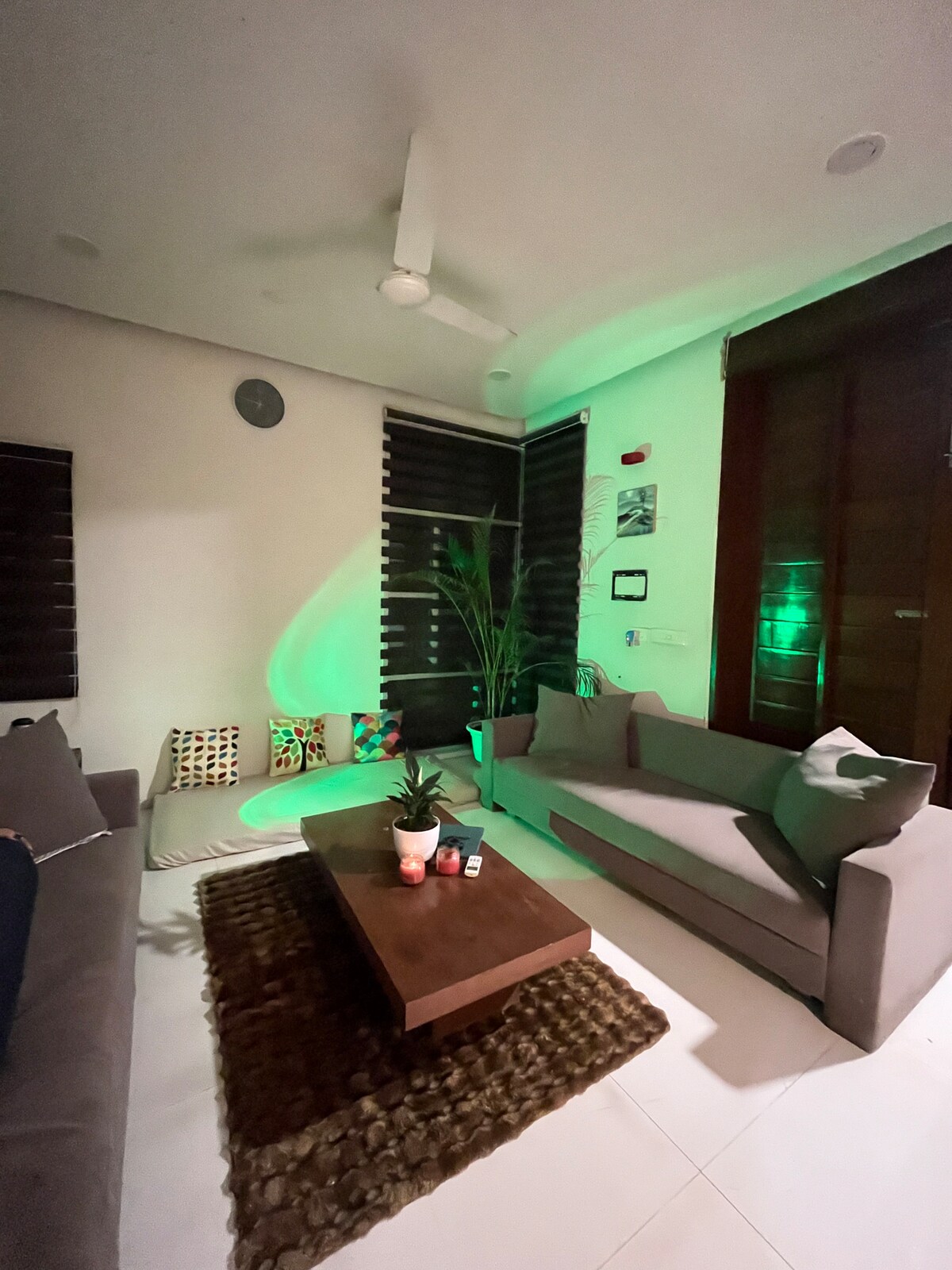 Omkar é uma casa mobiliada moderna localizada em Shantipura Ahmedabad. A casa é composta por 4 quartos e 4,5 banheiros e uma espaçosa sala de jantar, área de cozinha e uma sala de estar gigante para relaxar. A casa está equipada com todas as comodidades essenciais para os hóspedes terem o máximo conforto durante a estadia. Há muitos jogos de tabuleiro para desfrutar de interior e acesso à área de jardim comum para jogar jogos ao ar livre. Uma área muito tranquila para trazer sua família e amigos para relaxar no fim de semana ou durante a semana.