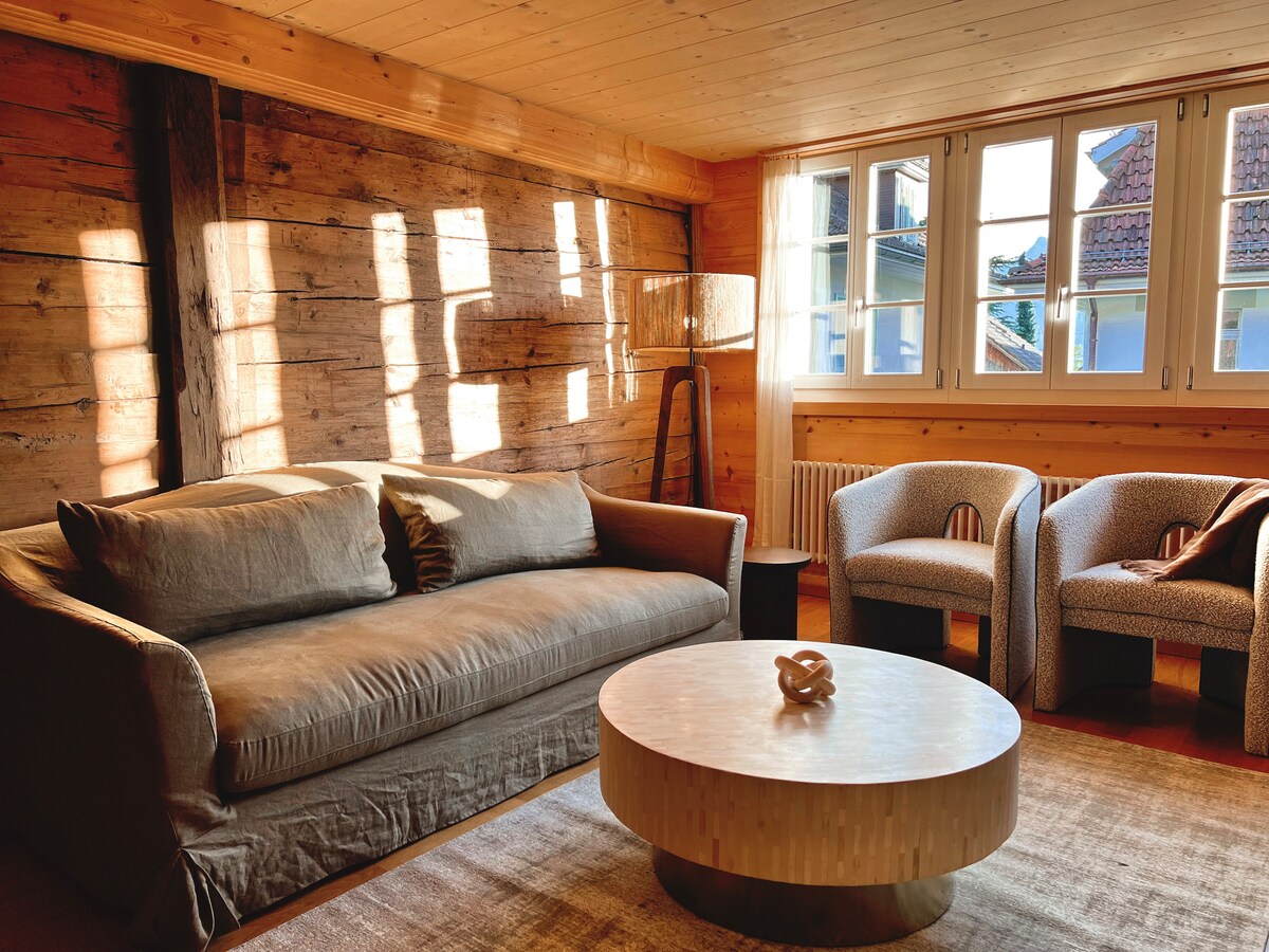 Pousada de estilo nórdico em uma antiga casa de fazenda centenária reformada. 3 cães de trenó vivem na estufa e no 1º andar. O apartamento no andar térreo tem: quarto com vista para as montanhas | quarto das crianças / biblioteca | sauna infravermelha | sala de jantar / sala de estar com fogão sueco e sofá-cama | cozinha | pequeno banheiro. A altura do teto no banheiro, no quarto das crianças e no quarto é de 1,83 m. Os outros quartos têm pé-direito normal. O PanoramaCard Thunersee (cartão de hóspede) oferece descontos.