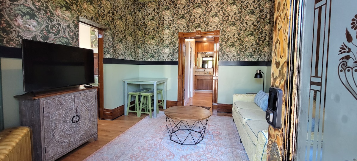 Este apartamento encantador é o 2º andar da nossa casa histórica. Tem uma entrada separada. Estamos a uma curta distância a pé do coração do centro de Boise, com restaurantes requintados, cervejarias, artes e tudo o que Boise tem a oferecer. Fora da nossa porta dos fundos estão as colinas de Boise para caminhadas ou passeios noturnos para vistas incríveis de Boise. Inclui um quarto privativo, sala de estar espaçosa, cozinha separada e área de refeições. Todo este espaço foi totalmente renovado, mantendo seu charme e personalidade originais.