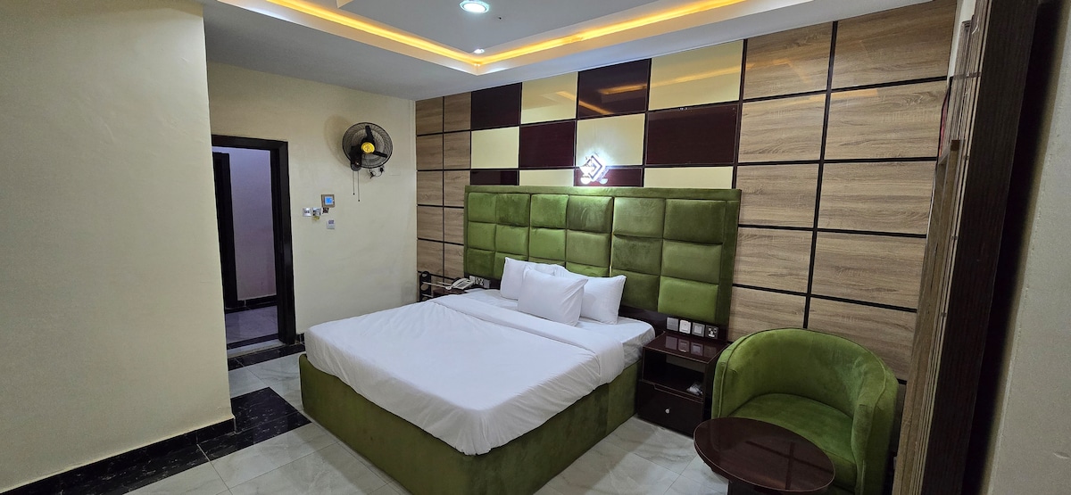 Este edifício de 35 quartos é o lugar perfeito para ficar, quer esteja em Abuja a negócios ou lazer. Oferece instalações de última geração, quartos bem equipados, um restaurante moderno, uma espaçosa sala de conferências, uma piscina, um ginásio, serviço de segurança 24 horas e muito espaço único.