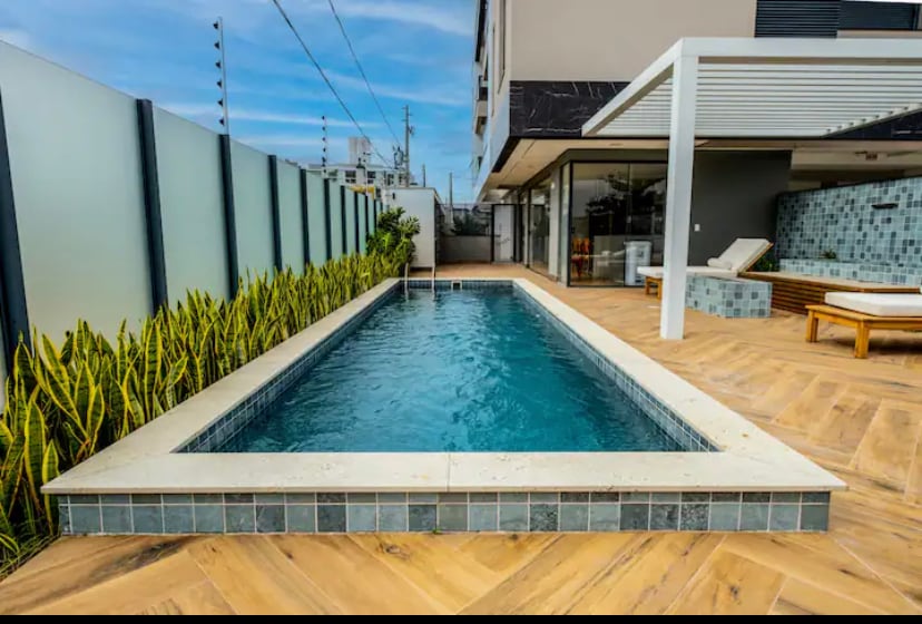 Moderna cabana na praia 3quartos AR Piscina Jardim