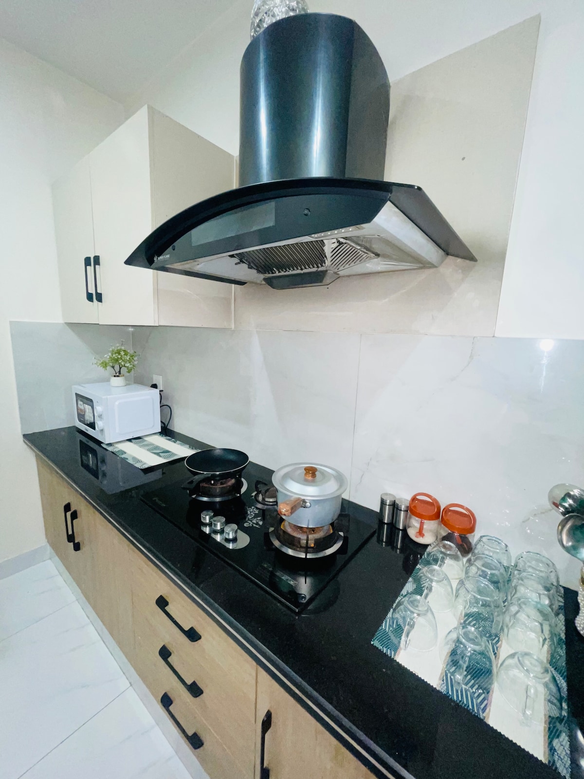 Indoor smoking not allowed! Umarried❌❌ Note: BOOK ON AIRBNB AND GET CONTACT NUMBER, DONT TRY TO MEET ME AT THE PLACE, THANKS. This is an Ultra Luxury Ground Floor of a house, it has 2 beds equipped with inverters, 2 baths, kitchen and a living room. Everything is brand new and you will definitely love it, its only for families. Loud Music and Parties aren’t allowed. On street parking is available, almost all the amenities are available, it is located in a walled society named as Model City 1.