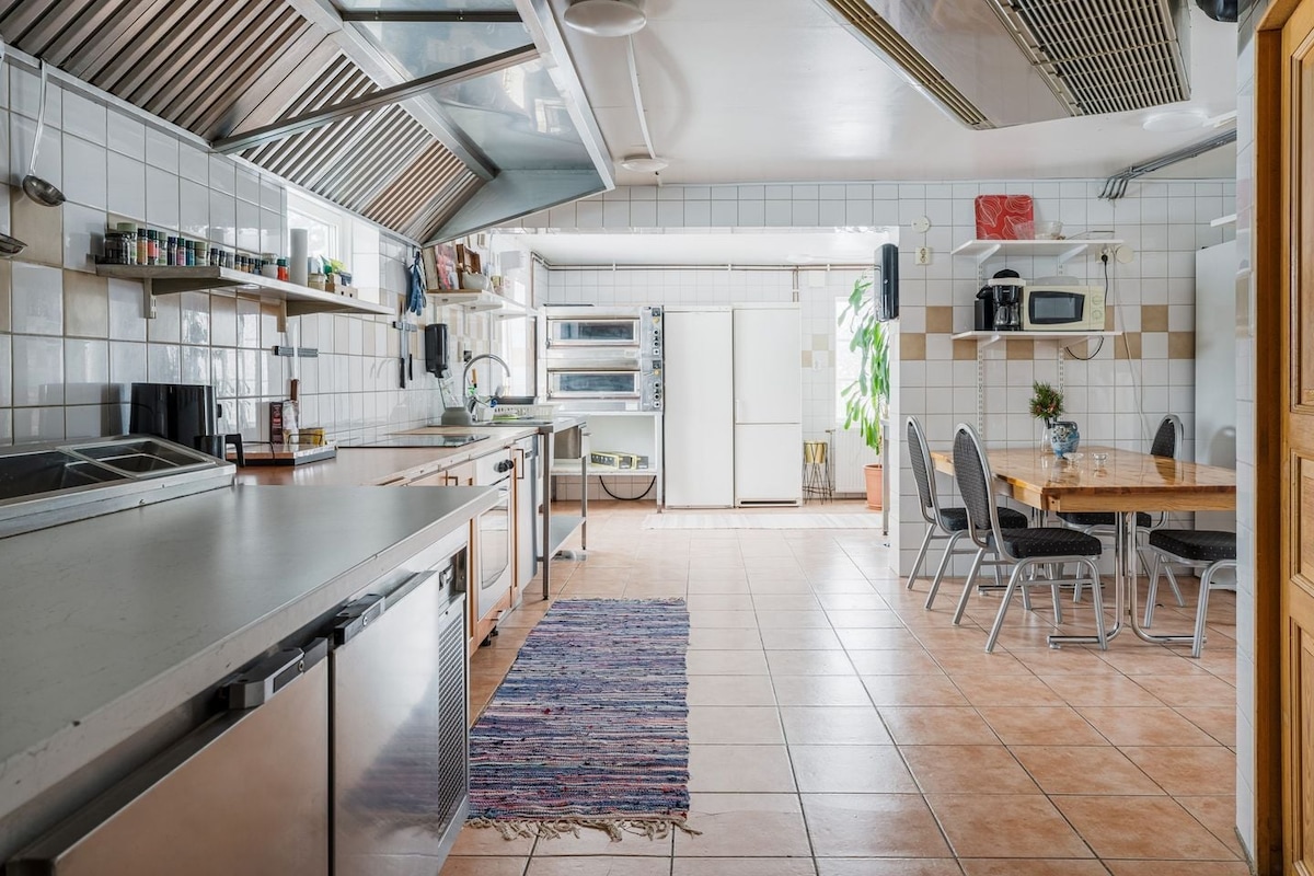 Quer uma conferência, um casamento ou um evento de que todos se vão lembrar para o resto da vida? Esta casa elegante é perfeita para viagens em grupo. Tem a igreja mesmo ao lado, caso queira realizar um casamento. E também somos proprietários de 19 propriedades, incluindo o Folkets Hus, aqui na aldeia, que tem capacidade para 450 pessoas e um grande palco. Por isso, se quiser organizar algo verdadeiramente único, tem aqui um ótimo parceiro. Temos referências de eventos com entidades governamentais e grandes empresas, bem como com pequenas empresas e particulares.