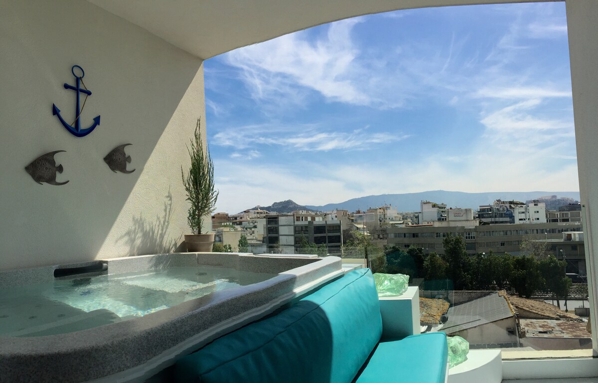 Cobertura de luxo com vista para a Acrópole e jacuzzi