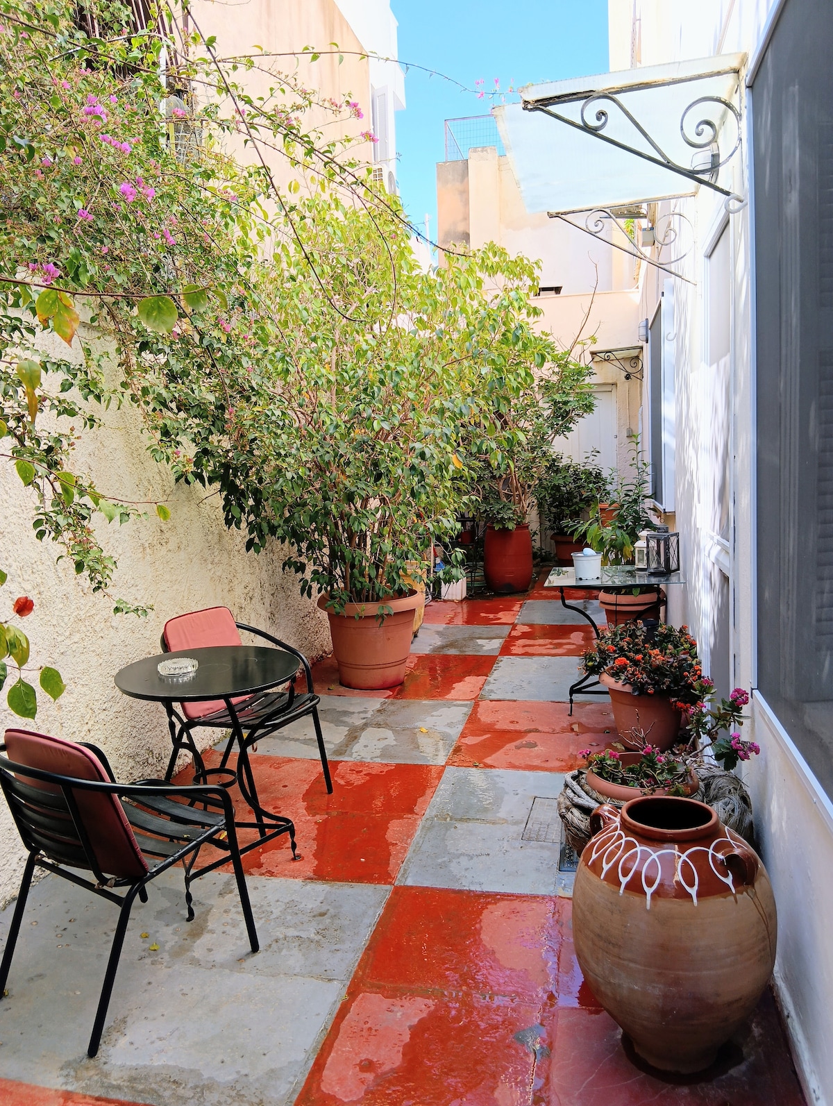 Desfrute de Atenas ao ver o seu bem mais importante: a Acrópole. Este apartamento encantador de 95 metros quadrados tem acesso a um encantador terraço ensolarado privado coberto de relva, a partir do qual pode ver a acrópole! Abra as portas de vidro para a varanda ensolarada e desfrute do sol que veste a casa de dois andares ao longo do dia. Este apartamento está cheio de pequenos toques adoráveis, incluindo objetos de arte peculiares e alguns acessórios fantásticos.