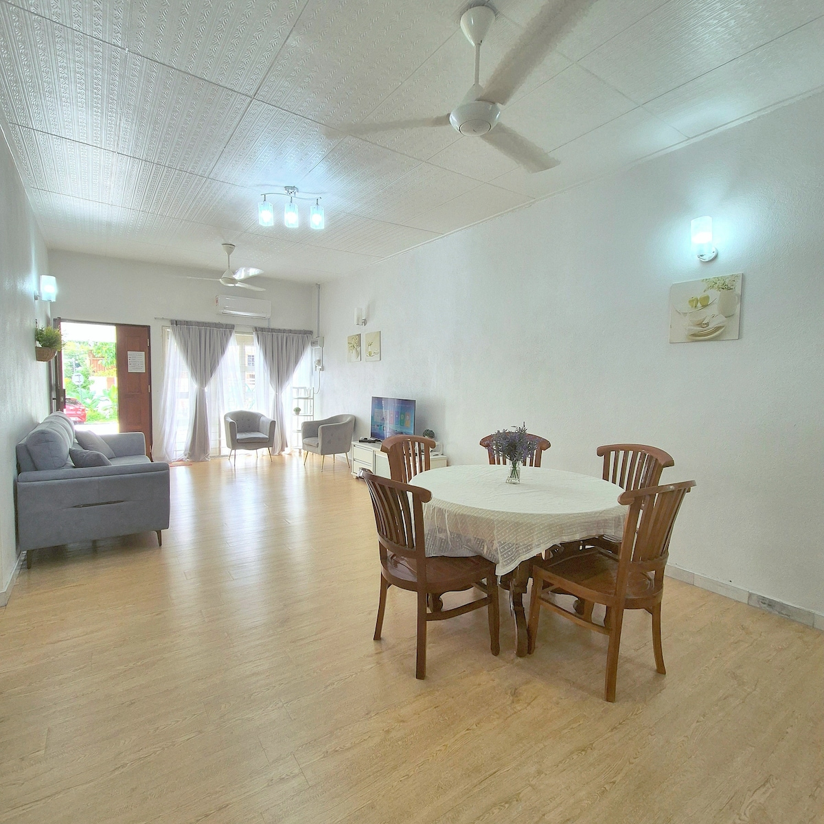 A Homey House vem com um sonho de dar uma estadia limpa, caseira, relaxante e aconchegante para você ou sua viagem em família, férias e feriados. Nossa seleção de roupas de cama quentes, deseja aliviar a sensação de ter a mesma estadia comercial em outro lugar. Sinceramente, esperamos que você tenha uma estadia tranquila, agradável e alegre nesta ilha. Esta é uma espaçosa casa semi-D de um andar totalmente mobiliada (2300 pés quadrados) com 3 quartos, 2 banheiros, portão automático, pode estacionar até 3, 4 carros no local, estacionamento gratuito do lado de fora.