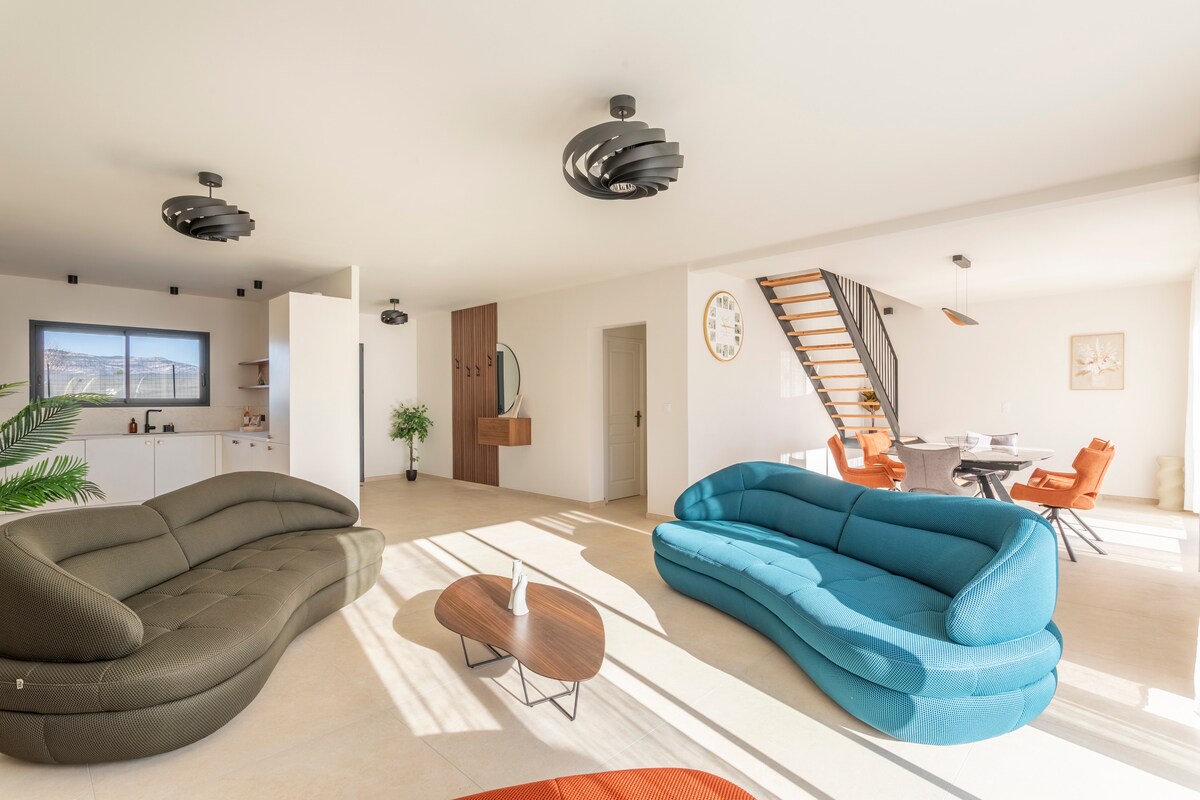 Damos-lhe as boas-vindas a La Bastide des Champs, uma moradia moderna de 4 estrelas com jardim e piscina, concebida para acolher famílias, profissionais e grupos de amigos que procuram espaço, paz e sossego, bem como comodidades de luxo. Localizada de frente para as colinas, oferece luz natural, espaços generosos, suites e casas de banho privadas, bem como um ambiente único para desfrutar, conviver e respirar.