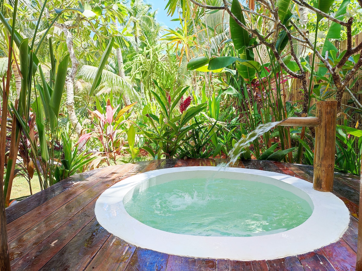 Bem-vindo ao nosso pequeno santuário de tranquilidade. Ficar na casa de bambu, você não vai estar muito perto e não muito longe de tudo. Localizado à beira-mar de Santa Fé, no meio de um jardim tropical exuberante e tranquilo; A Bamboo House fica a 50 passos de uma praia de areia branca vazia que oferece pores do sol de tirar o fôlego, a 8 minutos da Cloud 9 e longe das multidões. Este portal é o lugar perfeito para deixar as energias fluírem, dedicar-se à contemplação e deleitar-se com o momento.