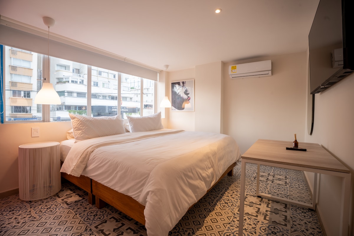 Damos-lhe as boas-vindas ao seu refúgio caribenho em Bocagrande! A apenas um quarteirão da praia principal, este encantador recanto recebe-o com segurança, limpeza impecável e uma tranquilidade celestial. Caminhe ao ritmo do mar até aos melhores restaurantes; relaxe e deixe-se envolver por uma experiência acolhedora cheia de frescura tropical.