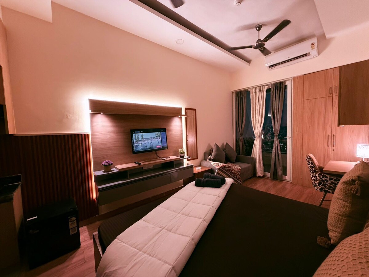 Bem-vindo ao AO Suites – Gaur City Mall, Noida! Experimente o conforto e a conveniência no coração de Noida no nosso apartamento compacto, acolhedor e bem concebido, localizado dentro do Gaur City Mall. Perfeito para viajantes solitários, casais ou hóspedes de negócios. acesso fácil a lojas, restaurantes, cinema e entretenimento, tudo a apenas uma viagem de elevador de distância. O apartamento possui uma cama confortável, uma televisão inteligente, uma kitchenette compacta e uma casa de banho anexa para sua comodidade.