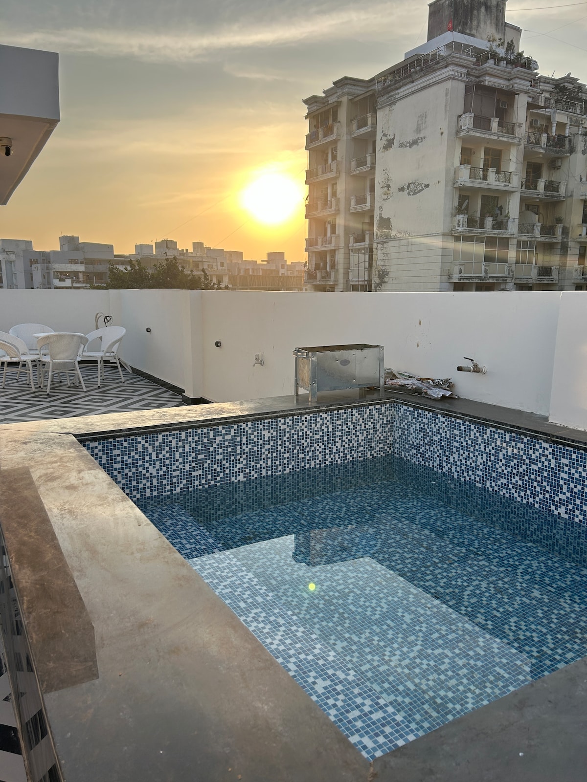 ✨ Elegante 2BHK com piscina, terraço e churrasqueira – Perfeito para escapadelas e celebrações! ✨ Bem-vindo à sua casa longe de casa: um alojamento esteticamente bonito com 2 quartos e 2 casas de banho, perfeito para fins de semana relaxantes e estadias prolongadas. Este espaço cuidadosamente concebido apresenta: 🏡 2 quartos espaçosos com roupa de cama acolhedora 🛁 2 Casas de Banho Privadas 🏊♂️ Piscina refrescante com vibes de descontração 🔥 Área de churrasco — ideal para grelhados à noite 🌿 Área de estar no terraço com luzes de fadas, assentos e uma bela vista