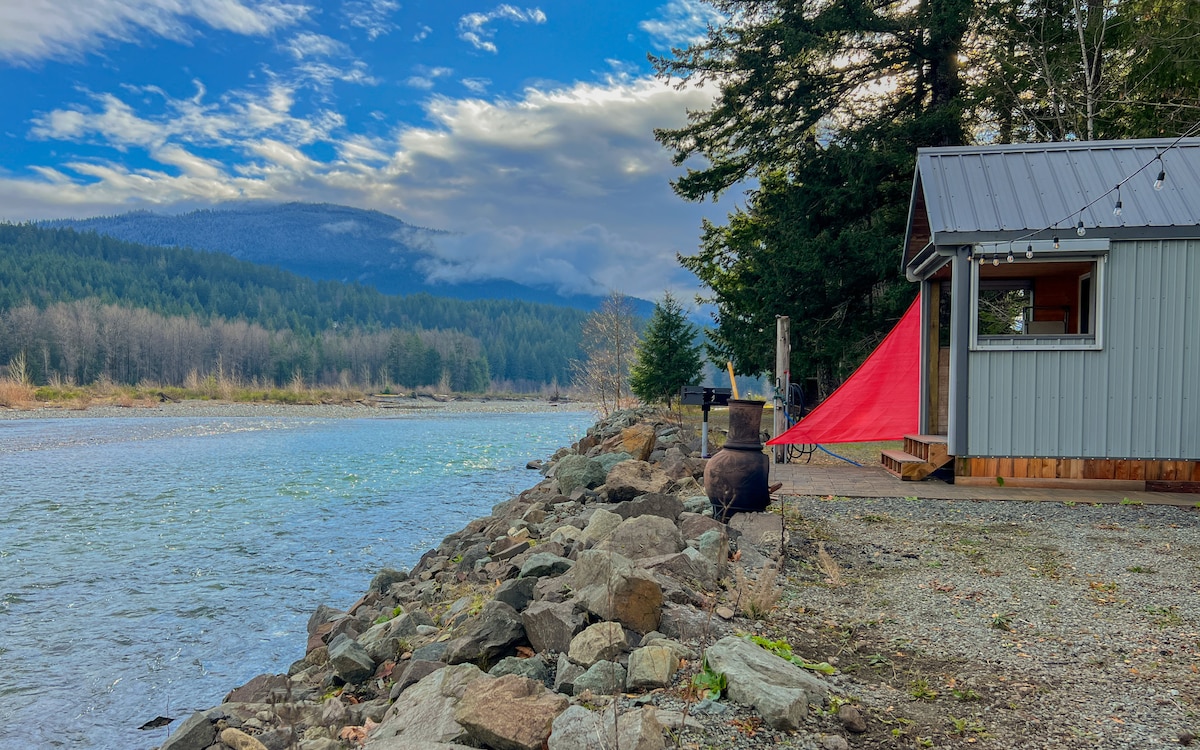 A-Frame com banheira de hidromassagem no Monte Rainier e no rio Nisqually