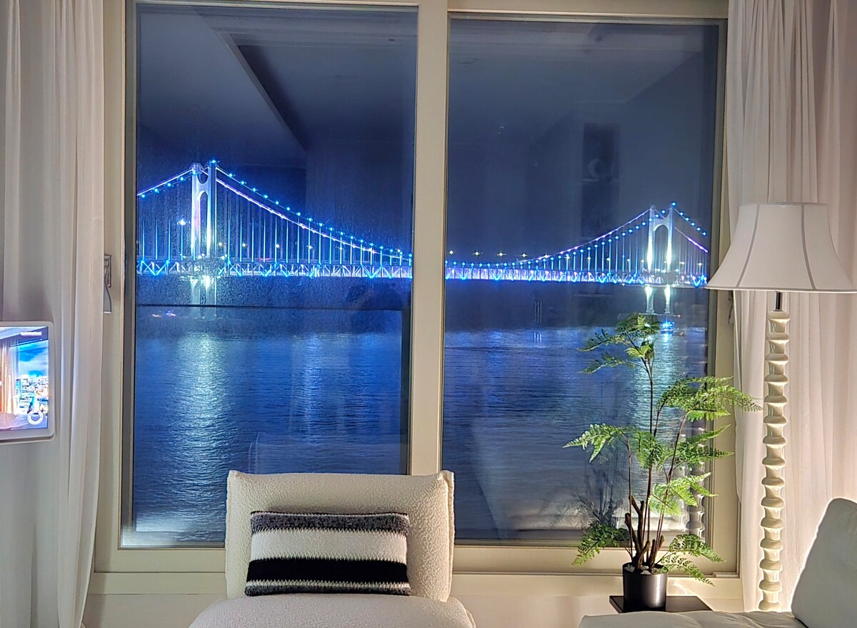 [Promoção de abertura] Acomodação com vista para o rio Gwangang / Estacionamento gratuito / Mercado de Milak / Extremamente limpo / 7 pessoas / Superhost /