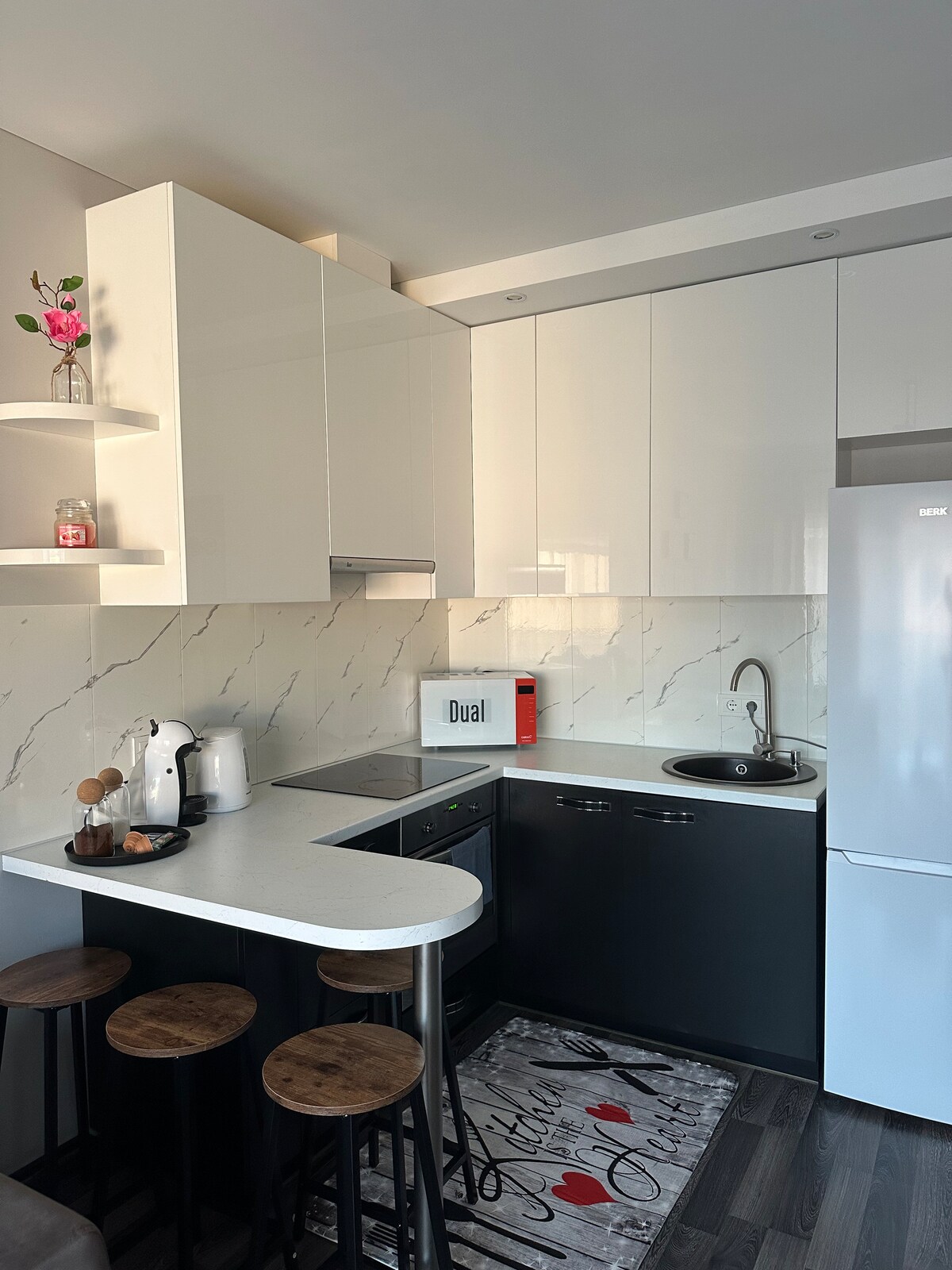 Our apartment is in one of the most interessting courtyards in the city of Kaunas. The square is filled with beautifull colours and unique art. The apartment is located in the heart of Kaunas, right next to Freedom avenue (Laisvės g.). Šie apartamentai įsikūrę viename įdomiausių Kauno kiemelių, kuris išsiskiria savo spalvingumu, unikaliais meno kūriniais. Apartamentai yra pačioje Kauno miesto širdyje, prie pat Laisvės alėjos.