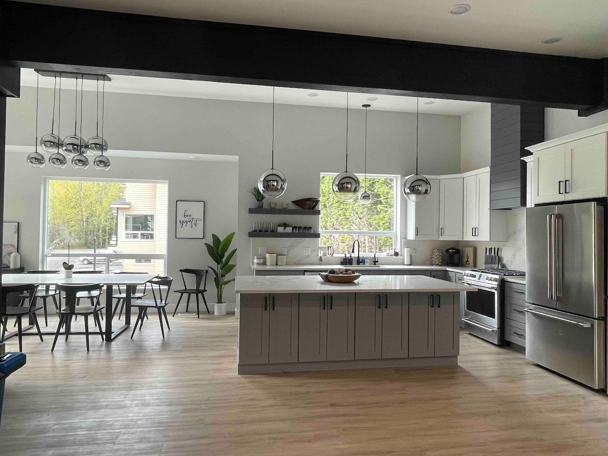 Construção nova, casa de 3 quartos com 2 salas de estar, 2 decks e uma banheira de hidromassagem! Prepare-se para ser sua casa longe de casa e retiro na montanha. Secador de botas de 16 pares para equipamentos de esqui/caminhada, TV de cinema de 86 polegadas no porão, lareira a gás no deck traseiro, segunda área de estar no nível principal. Este é o nosso refúgio pessoal, por isso o equipamos com tudo o que gostamos de ter para desfrutar da nossa casa longe de casa em Alyeska.