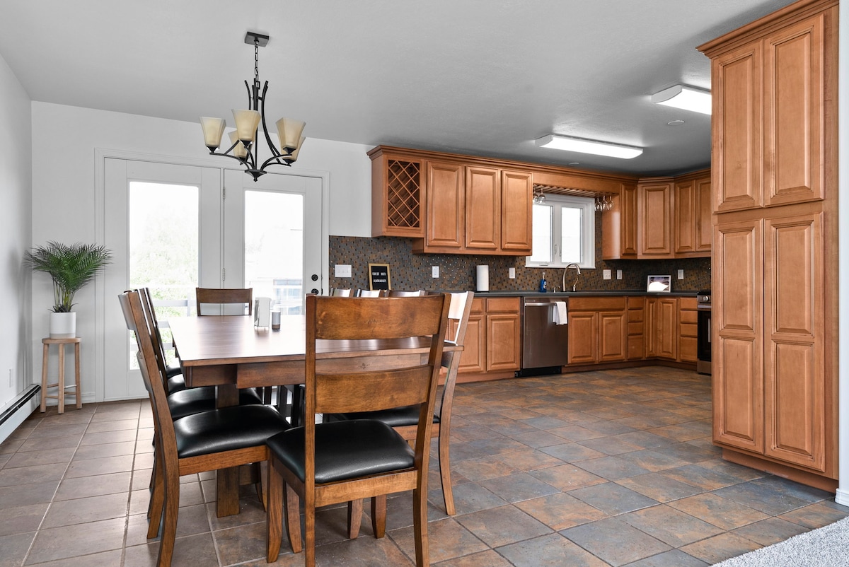 Divirta-se com toda a família nesta casa elegante e espaçosa de 5 quartos! Esta casa está equipada com uma grande cozinha, duas grandes salas de estar, uma garagem e uma sauna. Está localizada em um bairro residencial tranquilo e seguro, a 8 minutos de carro do Aeroporto. Restaurantes e mercearias estão a uma curta distância a pé. Bem-vindo a fazer desta casa a sua base enquanto você explora tudo o que Anchorage tem a oferecer!