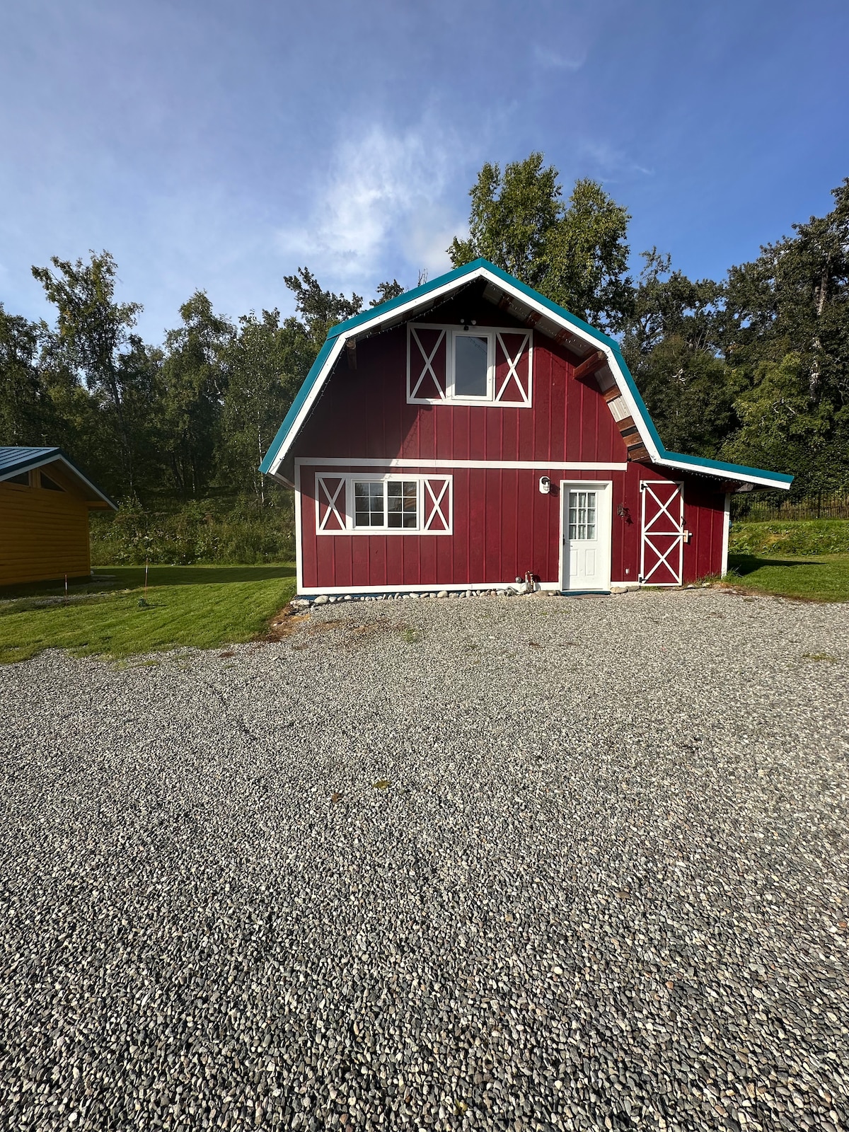 Suíte privativa para hóspedes em uma subdivisão rural na base do Hatcher Pass. Dentro há uma suíte de hóspedes elegante e acolhedora de um quarto com uma cozinha completa que é decorada com arte e produtos feitos por artistas e artesãos locais. Lá fora, você encontrará um pátio com uma fogueira sem fumaça e um galinheiro. No inverno, você estará perto de Hatcher Pass, da área de esqui Skeetawk e de todas as oportunidades de recreação de inverno disponíveis na região.