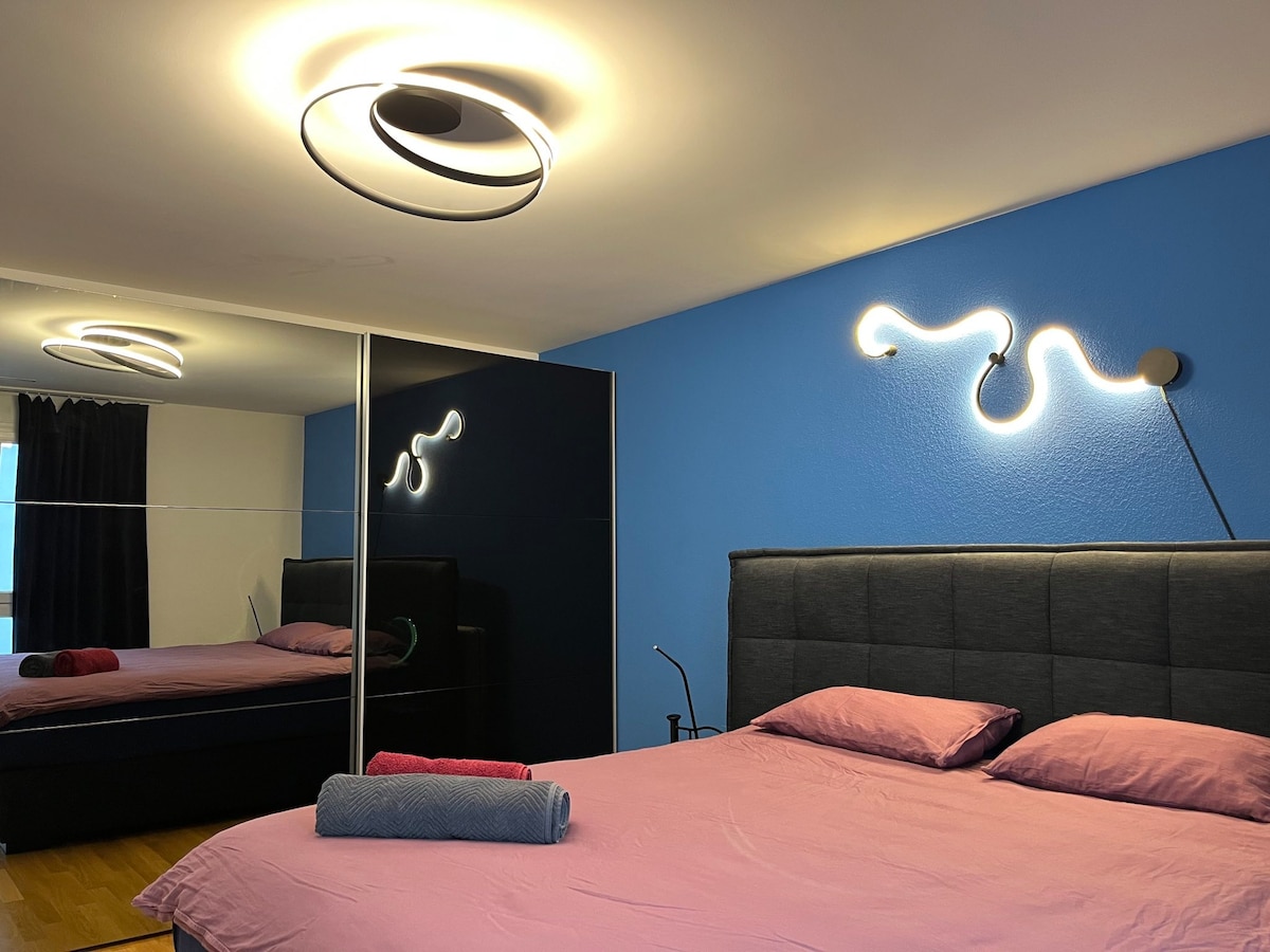 Apartamento luxuosamente projetado no coração de Glattbrugg, bem conectado à rodovia e à rede de transporte público da cidade e do aeroporto (embora esteja a apenas 5 minutos de carro do aeroporto, o isolamento acústico do apartamento é muito bom e você não ouve o barulho dos aviões no interior.) A 3 minutos a pé das duas estações de trem, você pode explorar a cidade e sua vida noturna, supermercados, restaurantes e academias também estão por perto.