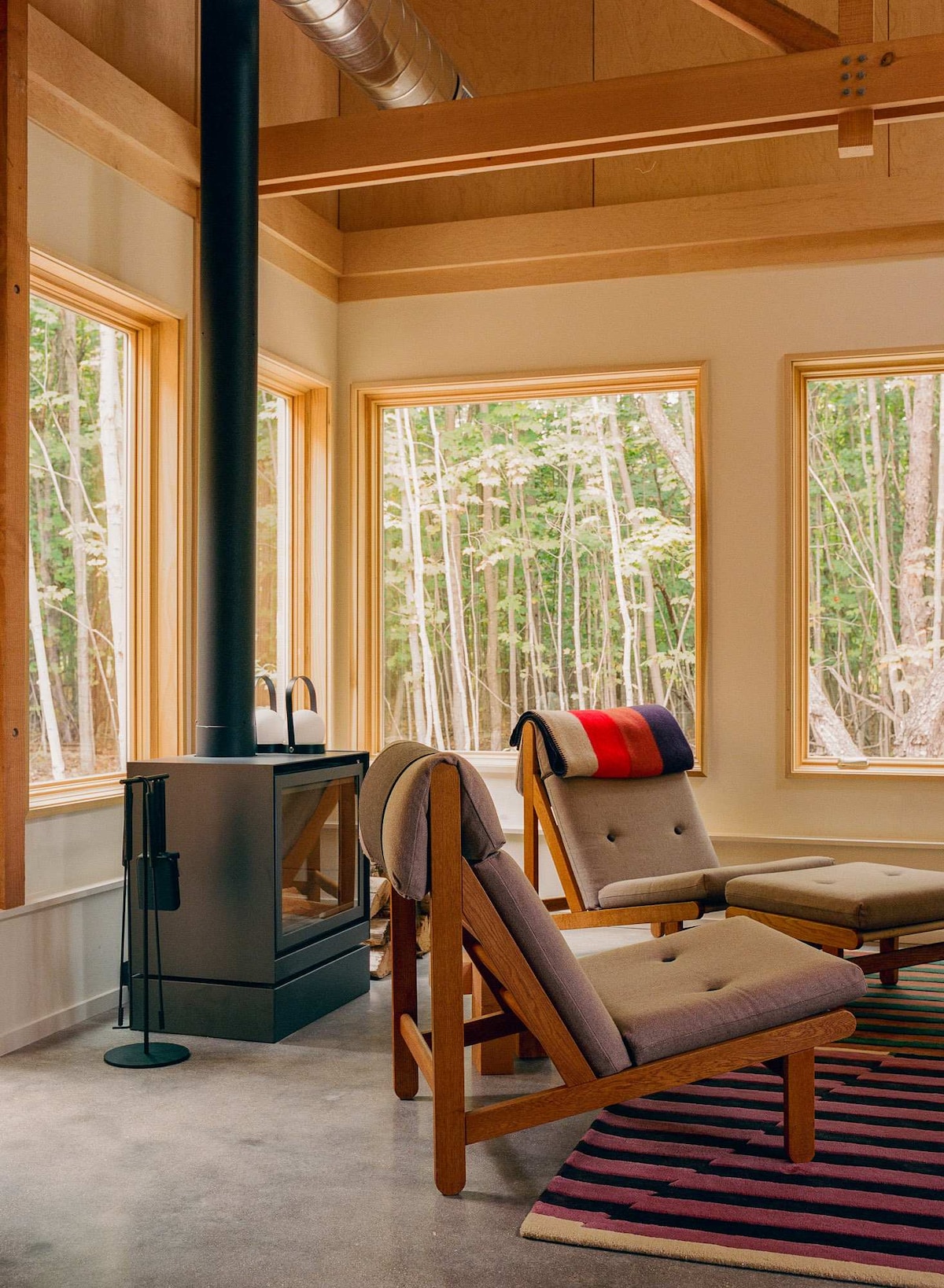 Seeblick Haus is a small vacation home for 4 people on a secluded, very private site in Northport. The open floor plan of the house is designed around the natural setting of the property and facilitates a 270 degree view of Grand Traverse bay and the surrounding orchards. Large windows offer the experience to be close to nature through all seasons and the wrap-around porch extends the living space to the outdoors.