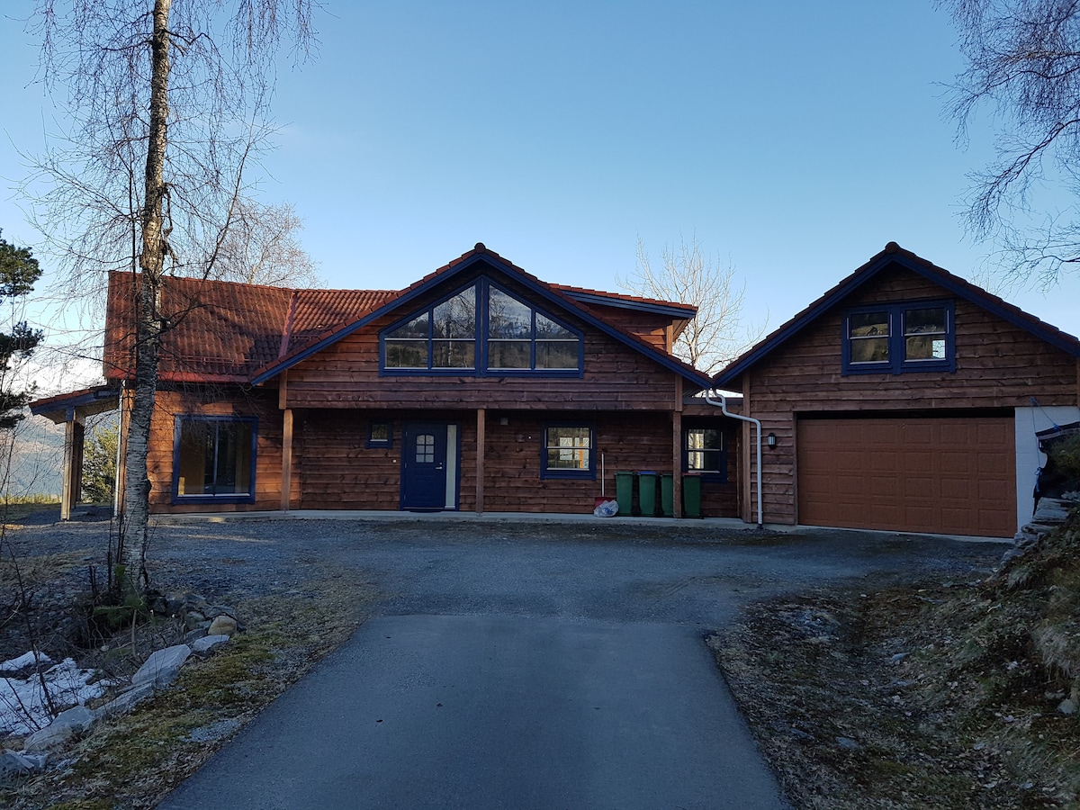 Bem-vindo (a) à nossa casa! Experimente a tranquilidade e a bela vista da nossa casa espaçosa e adequada para crianças. O que oferecemos: - Muito espaço: Grande e arejado com mais quartos e sala de estar confortável. - Barnevenleg: prateleira Leike, trampolim ++ - Bela vista da cozinha, sala de estar e terraço. - Perto da natureza: ótimos tipos de caminhadas do lado de fora da porta. Perfeita para aventuras ativas e relaxamento. Desejamos-lhe uma receção calorosa!