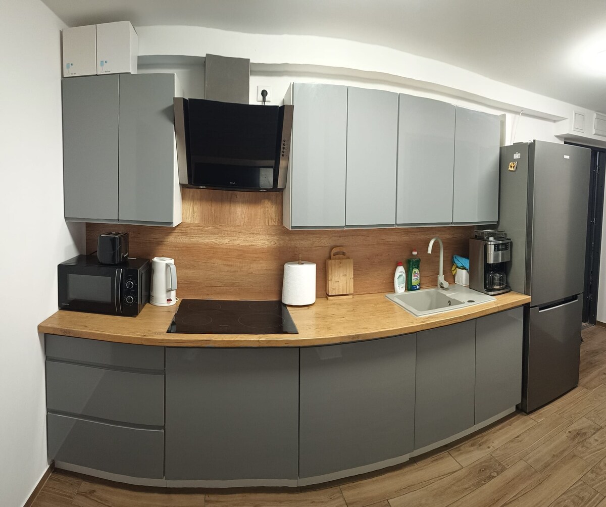 New apartment 44m2 with a large terrace 140m2, ground floor. The apartment is fully equipped. Self check-in :) The apartment is located in the center - Arena Prezero - 1 km - University of Technology - 0.5 km - Market Square - 1 km - Kaufland -0.2 km Places to sleep - bedroom one large bed 160 cm - living room large corner sofa with sleeping function + two single beds - possibility of adding a work space Internet, smart TV 70 inches I cordially invite you - peace and comfort await you :)