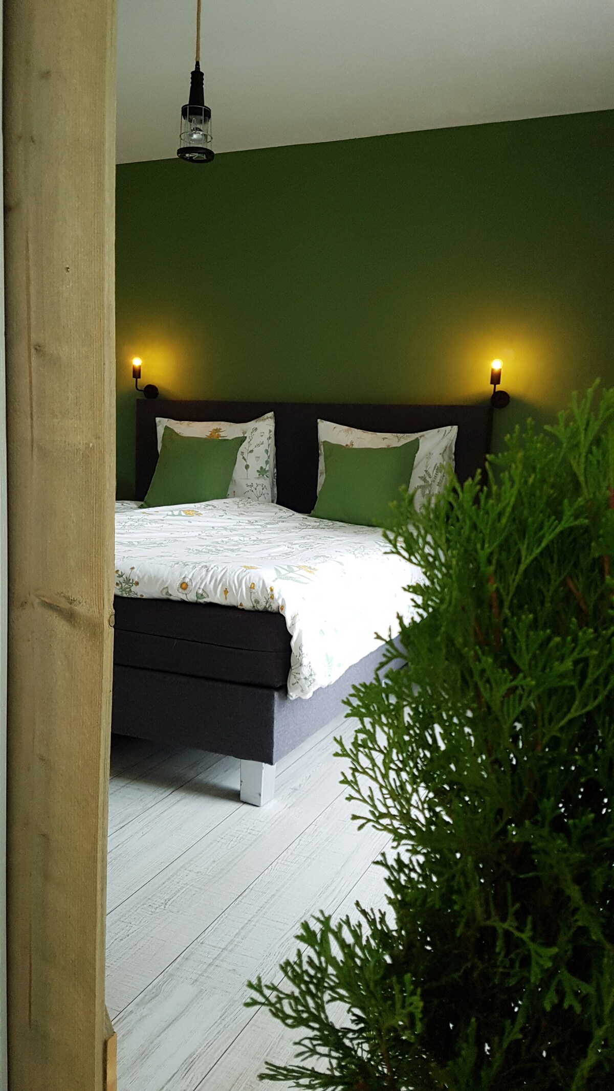 O quarto Pipoca é ensolarado, divertido, fresco e cheio de energia. Você já fica alegre quando entra. O espaço é muito consciente de todas as comodidades fornecidas e poupadas. O Popcorn e o Green room são, na verdade, duas pequenas casas sob o mesmo teto. A autêntica casa de madeira fica em um terreno de 800 metros quadrados. A privacidade é suficiente devido às divisórias. As crianças podem brincar no jardim e em seu próprio parque ecológico com cabana, balanços, etc.