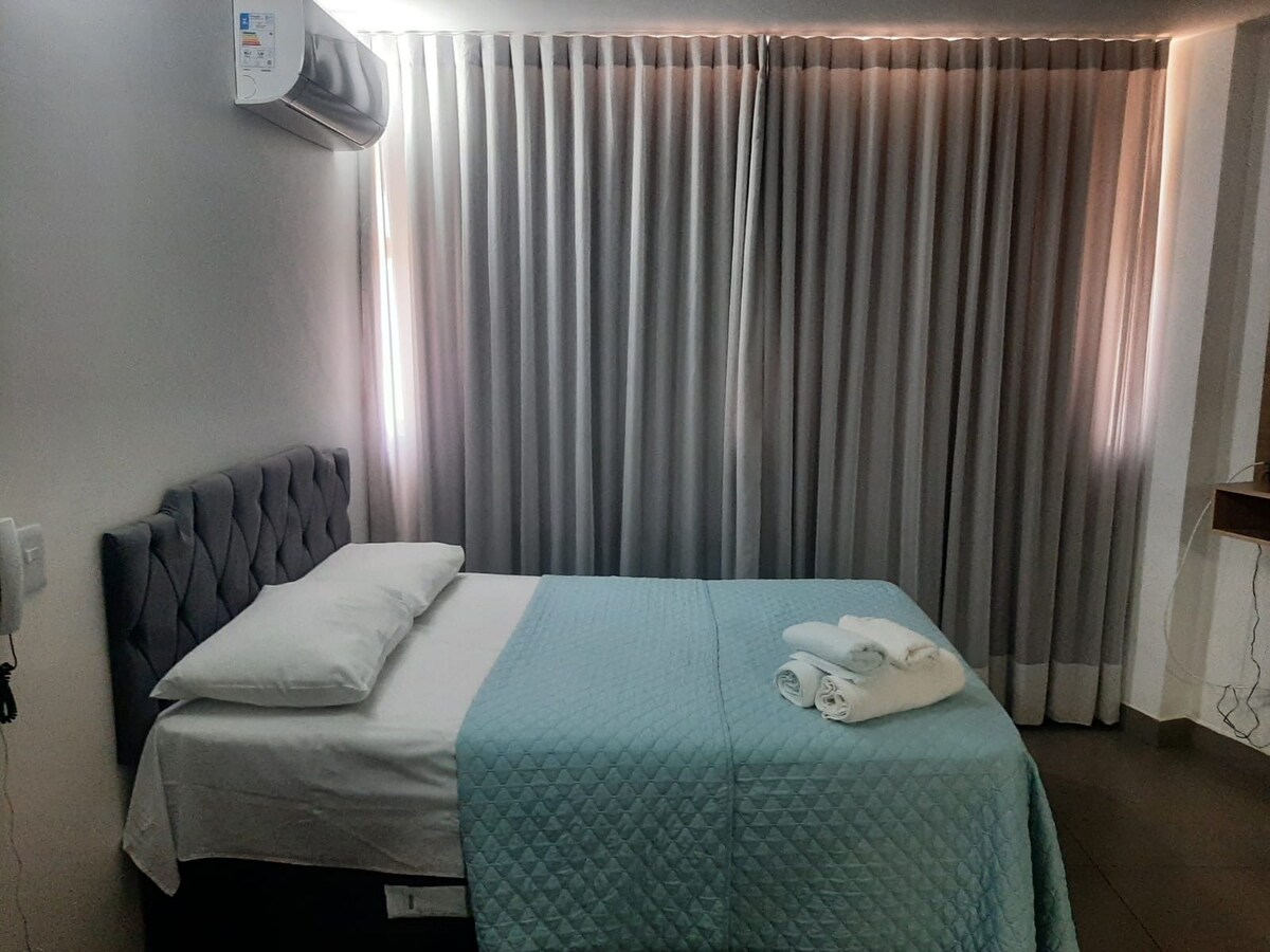 Prédio novo que fica próximo a cartão postal da cidade de Goiânia, o Parque Vaca Brava. A melhor área de lazer de Goiânia. Por perto, há outras comodidades, como Goiânia Shopping, supermercado Bretas, padarias e restaurantes. O apartamento é um studio bastante aconchegante, com ar condicionado de 18 mil btus para aguentar o calor de Goiânia. Fica no 8 (oitavo) andar. No Apto, há uma cama de casal e um sofá-cama 2 lugares para bem acomodar o hóspede. Há garagem, no subsolo.