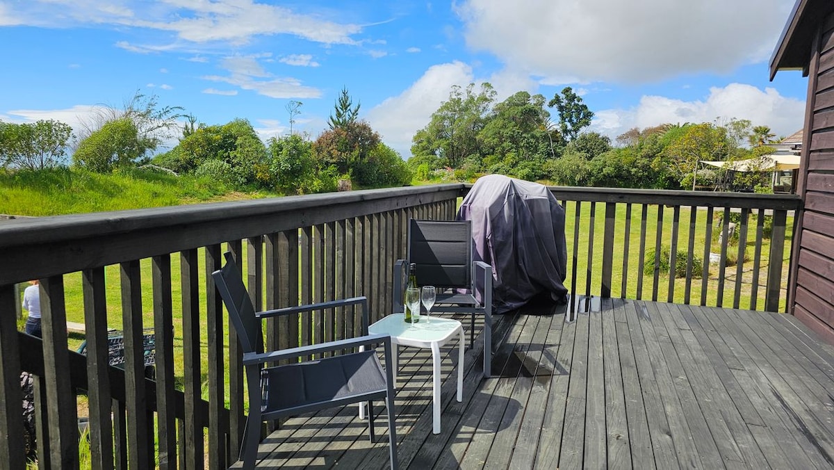 The Cabin is a peaceful hideaway nestled in a bamboo garden, giving it privacy and serenity. Enjoy beautiful sea views from the lounge and deck. It has a fully equiped kitchen, BBQ a cosy log fire for winter and Starlink Wifi. We offer private beach access and a shared spa pool with expansive views across the ocean. Take a stroll through 4ha of gardens and sample fruits from our organic orchard.