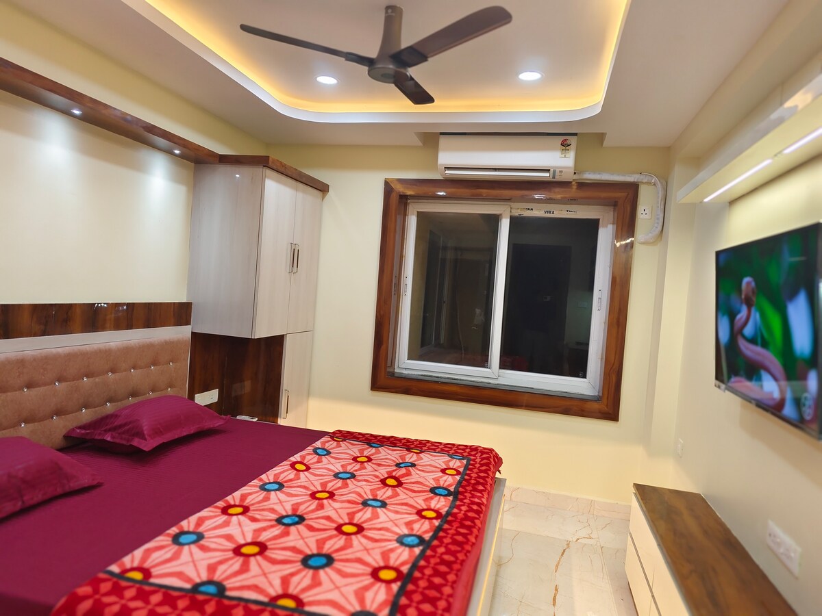 Experience peace, luxury and family-friendly comfort at our centrally located apartment near Puri Odisha Beach.The vibrant colours of the apartment is more beautiful than any hotel room in Puri. Experience a serene atmosphere, modern amenities, and easy access to local attractions. Perfect for a relaxing getaway, just steps from the beach and vibrant city life. This is a brand new apartment and is located near the beach area. Golden beach is at 800 m. Shree Jagannath temple is 2kms away.