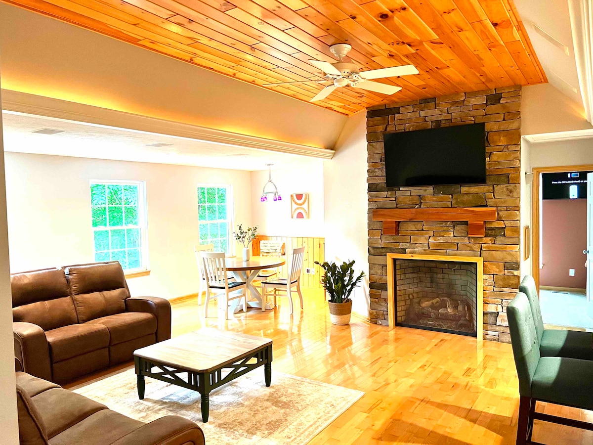 Damos-lhe as boas-vindas à sua escapadela de sonho: um alojamento de luxo de 6400 pés quadrados aninhado na floresta perto de Silver Lake Sand Dunes e do Lago Michigan. Perfeito para férias multifamiliares, reuniões, retiros empresariais ou escapadelas sazonais, este retiro rústico, mas refinado, oferece a mistura ideal de tranquilidade, espaço e conforto de luxo. Acomoda confortavelmente até 14 hóspedes em vários quartos e áreas de loft aberto. Cozinha gourmet totalmente equipada com espaço de jantar expansivo para refeições em grupo.
