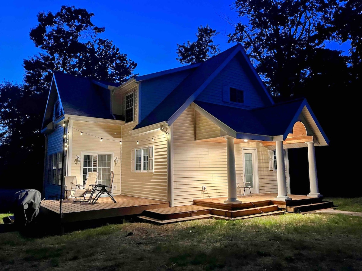 Pequena casa de campo encantadora situada em um belo cenário arborizado. As pessoas que ficaram aqui viram veados, guaxinins, raposas, pica-paus e ouviram os sons de noitibós à noite. Há um pequeno pátio nos fundos, com assentos ao ar livre e churrasqueira, com uma fogueira nas proximidades. É privado e romântico, mas ainda perto de Silver Lake, Stoney Lake e Lake Michigan. Equipado com cozinha completa, banheira e lavanderia. Aquecimento e AC disponíveis, o AC é removido durante os meses mais frios.