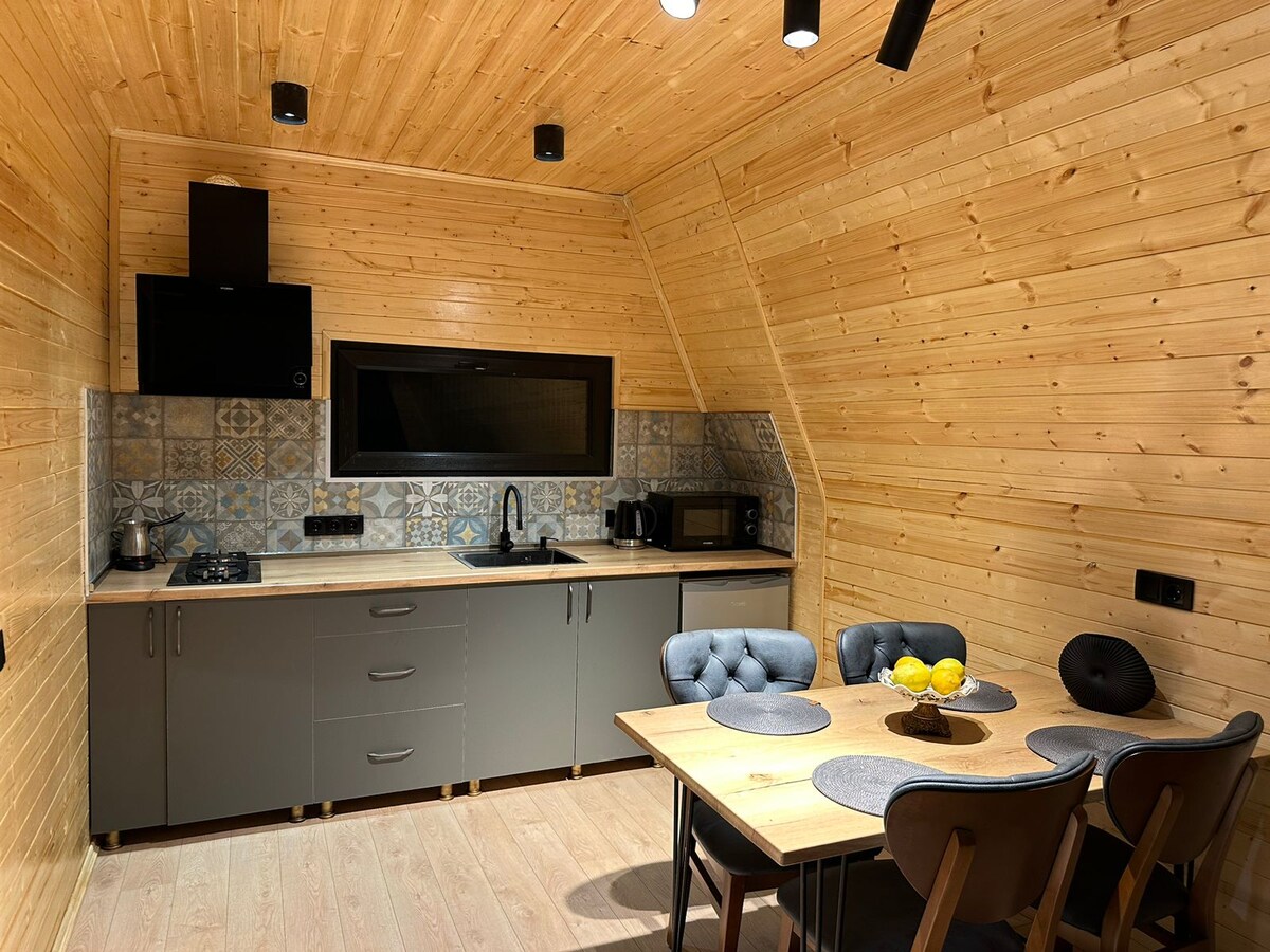 Uma casa de campo única com uma piscina aquecida e vistas panorâmicas para o mar, a apenas 15 minutos do centro de Batumi. Este espaço é para quem procura privacidade, tranquilidade e romance, perfeito para um casal. 🌅 Terá uma vista hipnotizante, atmosfera acolhedora e design elegante. 🏊♂️ Piscina aquecida privada só para si. 🌿 O espaço está cheio de tranquilidade e natureza. Importante: Para chegar à casa de campo, tem de caminhar cerca de 50 metros a subir. A vista compensará totalmente este pequeno esforço.