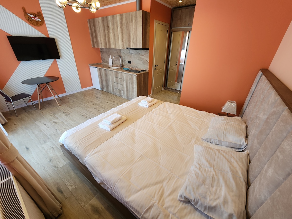 Large, beautiful 2-storey house in Gonio. You can enjoy the silence of nature and sea air. Your journey to the beach will take no more than 2 minutes. STUDIO APARTMENT for rent on the 1st floor of a house with a veranda overlooking the garden, where you can drink tea, coffee and Georgian wine. The apartment has a kitchenette with all utensils, a work space, Free wi-fi, bathroom amenities, TV.