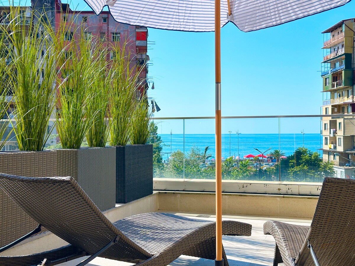 Apartamento com vista deslumbrante para o mar | NEXT WHITE ✨ Desfrute de 60 m² de espaço de estar elegante, além de um enorme terraço de 30 m²! Renovação de alta qualidade, mobiliário novo e uma localização única num complexo de prestígio. Comodidades: No edifício: ginásio, mercearia e um excelente café. Perto: banca de fruta do outro lado da rua, casa de câmbio ao lado. Localização: a apenas 5 minutos do melhor parque de Batumi, do passeio marítimo e do mar! Limpo, moderno e com localização perfeita. Experimente o melhor de Batumi!