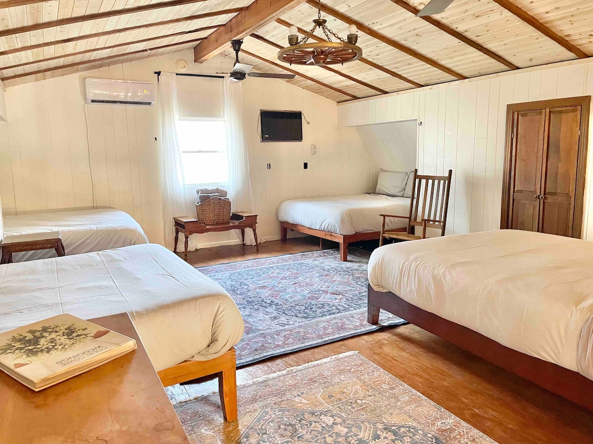 *Mensagem para grandes eventos/casamentos!* Refúgio perfeito em 24 hectares privados com espaço organizado para reunião. Noite de póquer no salão, café no pátio, filmes no escritório. Pratique Pickleball no Pickle Barn! S'mores à volta da fogueira, passeios pela natureza e jogos de quintal. A 16 km do Maior Buc-ee do mundo! Muito espaço para se espalhar, brincar e ligar. Planeie a sua reunião, retiro ou apenas uma escapadela simples. Convenientemente localizado na I-10, a uma hora da ATX e SATX e a 2 horas da HTX