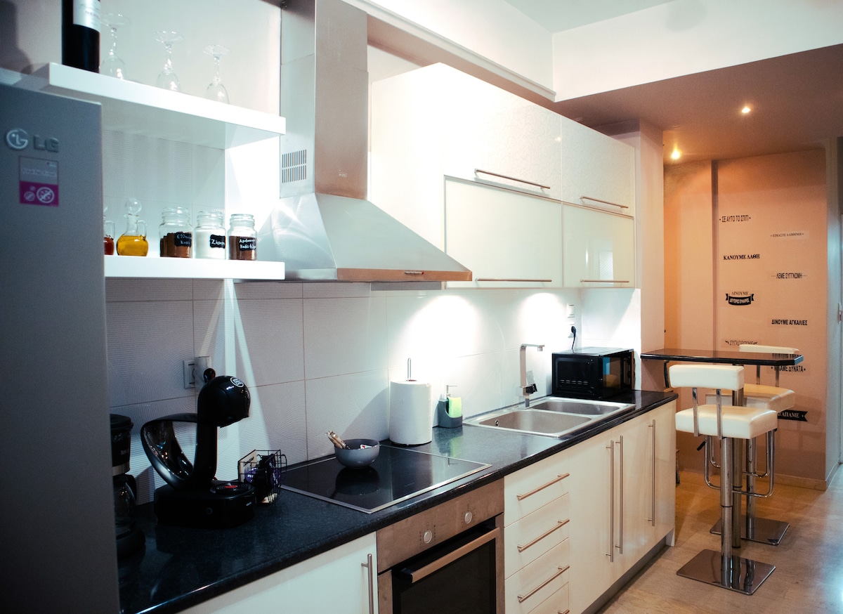 Apartamento urbano a 1 minuto a pé da linha 3 do metrô, que liga diretamente o aeroporto ao porto de Pireu Apartamento urbano de 55 m² (renovação novembro de 2023) em um estilo contemporâneo e sofisticado recebe os visitantes/viajantes de todo o mundo nas vibrações da vida ateniense e dos pontos turísticos mais conhecidos. Descubra as atrações mais famosas da cidade, como o Museu da Acrópole e o Pártenon em 10 minutos de metrô. Comece sua exploração de Atenas a partir daqui!