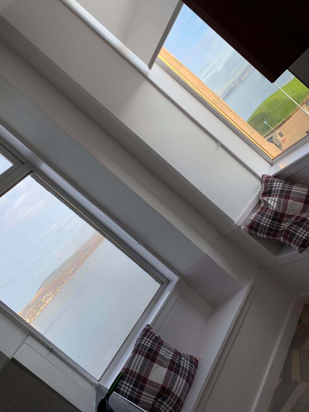 Sea Breeze East — lareira e vista para o Clyde