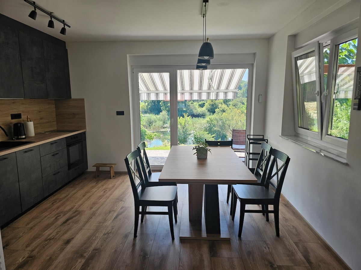 - Vista para o rio com o som relaxante da cascata - Terraço coberto com cozinha de verão e espaço de refeições. - Banheira de hidromassagem ao ar livre e sauna finlandesa (jardim) - Terraço para banhos de sol. - Todos os quartos com ar condicionado: sala de estar e 2 quartos. - Churrasco - Estacionamento coberto: 2 carros - Nadar no verão - temperatura da água. 23-27 °C - 10% de desconto numa aventura de adrenalina: caiaque no curso superior do rio - A 16 km de Karlovc. - Excursões: área de montanha (Gorski kotar, Klek), lagos de Plitvice (70 km)