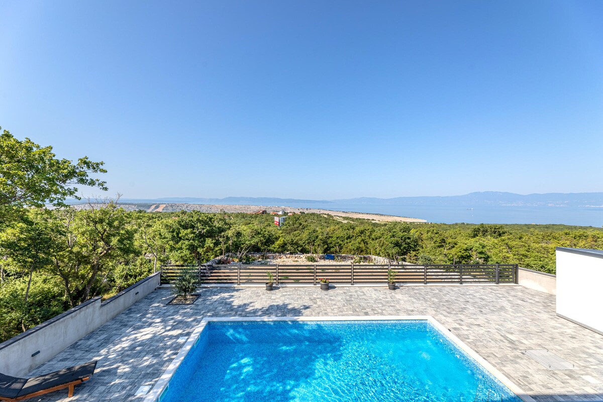 Desfrute do silêncio, da natureza incontaminada e do mar cristalino. Praia privada, a uma curta distância a pé. Vistas deslumbrantes para o mar, ilha de Krk e Rijeka podem ser apreciadas a partir de todos os 3 quartos, sala de estar grande,cozinha e, claro, a partir do terraço. Em 120 m2 há espaço suficiente para famílias e grupos maiores.
