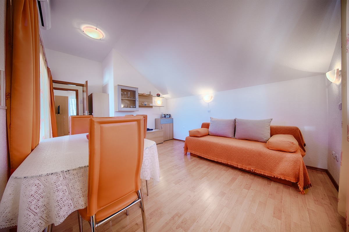 O apartamento está localizado numa casa de arquitectura dálmata original, feita de blocos de pedra de 60 cm de largura. Está localizado num local tranquilo e agradável, a apenas 2 minutos a pé do mar. O estacionamento privado para vários veículos fica a 1 minuto a pé.