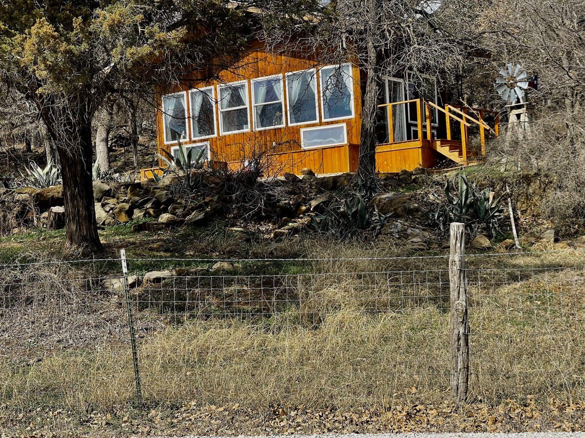 Situado ao pé de um cume coberto de pedras no Condado de Palo Pinto, o The Hideout at Rocky Ridge Studio oferece uma escapadela tranquila e panorâmica, a apenas uma hora a oeste de Fort Worth. Escreva, pinte, leia, relaxe e explore o zimbro e a encosta coberta de pedras. Caminhe até ao pitoresco Brazos de Dios ou explore as estradas montanhosas do rancho. Esta cabana de 480 pés quadrados é artisticamente decorada, simples e pacífica. Não encontrará nada extravagante, mas tudo o que precisa para recarregar as energias e restaurar uma alma ocupada.