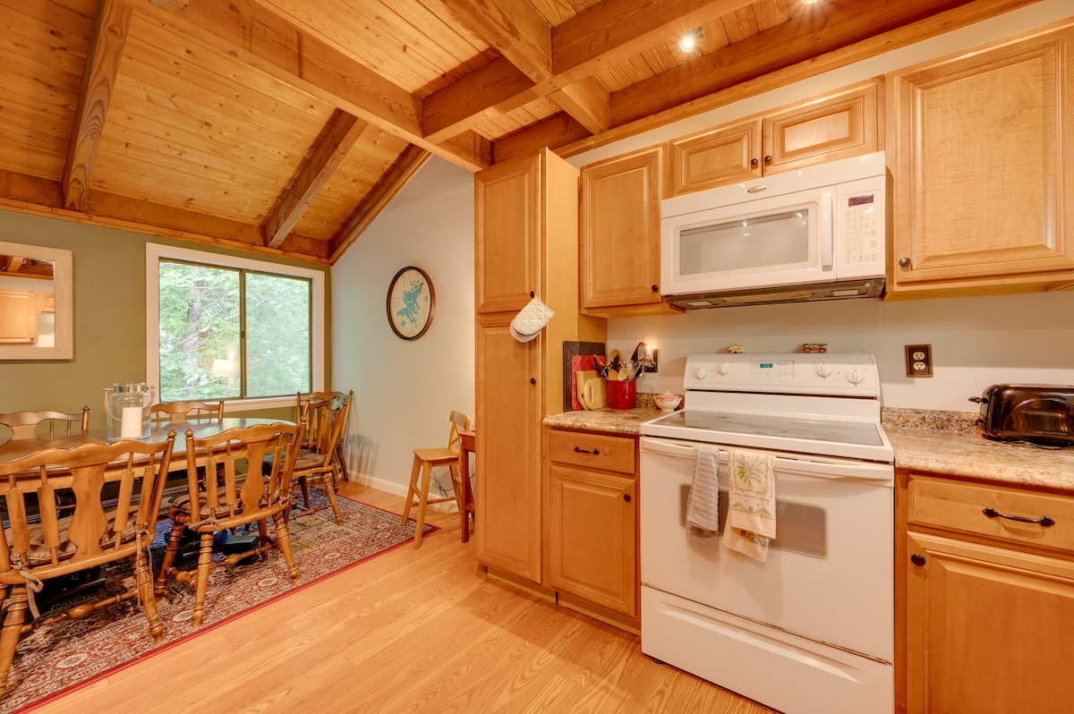 Destacado pela sua proximidade com aventuras ao ar livre, comodidades da comunidade e espaço interior confortável, este retiro Lincoln é perfeito para a sua próxima escapadela em New Hampshire! Este arrendamento de férias de 3 camas e 2 casas de banho tem uma lareira acolhedora e uma cozinha completa, além de um alpendre fechado onde pode relaxar com vista para a floresta. Vá para as encostas do Loon Mountain Resort ou explore trilhos para caminhadas panorâmicas nas Montanhas Brancas! Mais tarde, pode acender a grelha elétrica para jantar e relaxar com um filme junto à lareira.