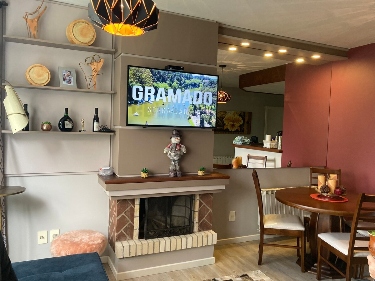 Apartamento duplex com uma decoração charmosa e aconchegante, remete perfeitamente ao clima agradável de Gramado. Localizado em uma das áreas mais nobres da cidade, próximo ao centro e principais pontos turísticos. Possui wifi, smart TV, aquecimento a gás, lareira, lavadora/secadora de roupas, ar condicionado portátil, cozinha, cama e banho completos, garagem. Tudo de boa qualidade, num lugar silencioso e arborizado, perfeito para famílias que buscam conforto e tranquilidade.