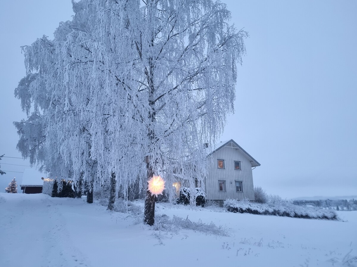 Aqui está a oportunidade de relaxar e encontrar paz, mas também de desfrutar de atividades em grande ambiente natural. Ótimas oportunidades para esqui, bicicleta e caminhadas. Sala de estar acolhedora e grande mesa de jantar. TV privada no andar de cima no loft. Vários jogos de cartas e tabuleiro, consola de jogos, Wi-Fi e espaço de escritório Kubb, jogos de anel, escorrega e loja de jogos em dias agradáveis de verão. Casa de banho espaçosa com lavandaria e roupa disponível. Congela na barraca.